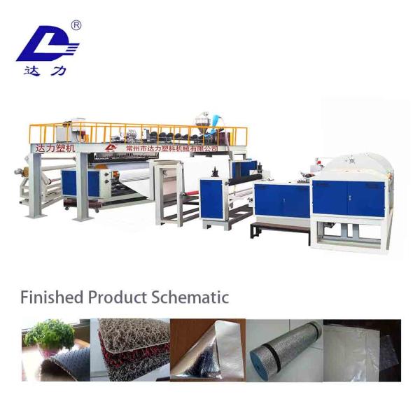 The production line adopts cast film process to heat and extrude PE,EVA,TPR,PP.and other material, coat on the substrates(base fabric), calender and cool, finally take up in rolls.